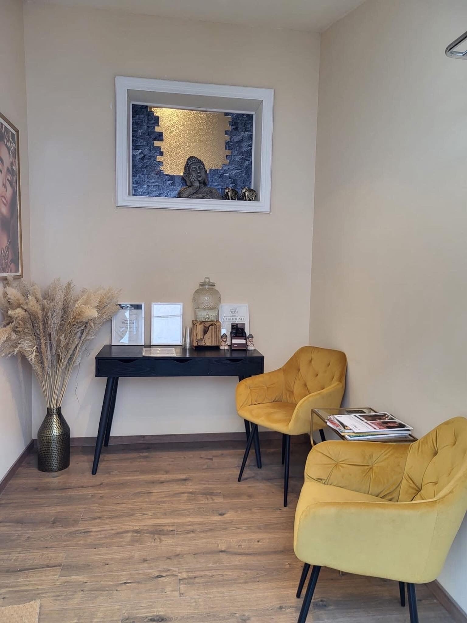 De ingang van de salon bevindt zich rechts om de hoek, tweede deur links