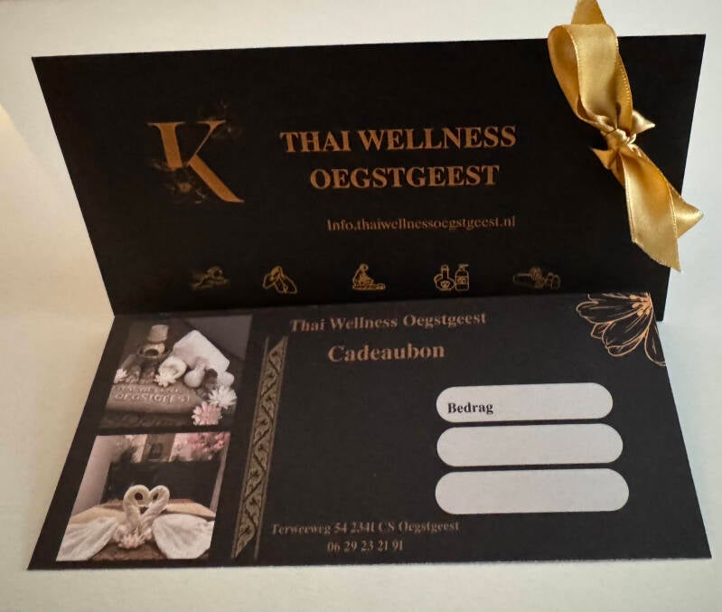 Wie verrast u met één van mijn Thaise massages? Schenk hem of haar een Thai Wellness Oegstgeest cadeaubon, verkrijgbaar in mijn massagesalon.